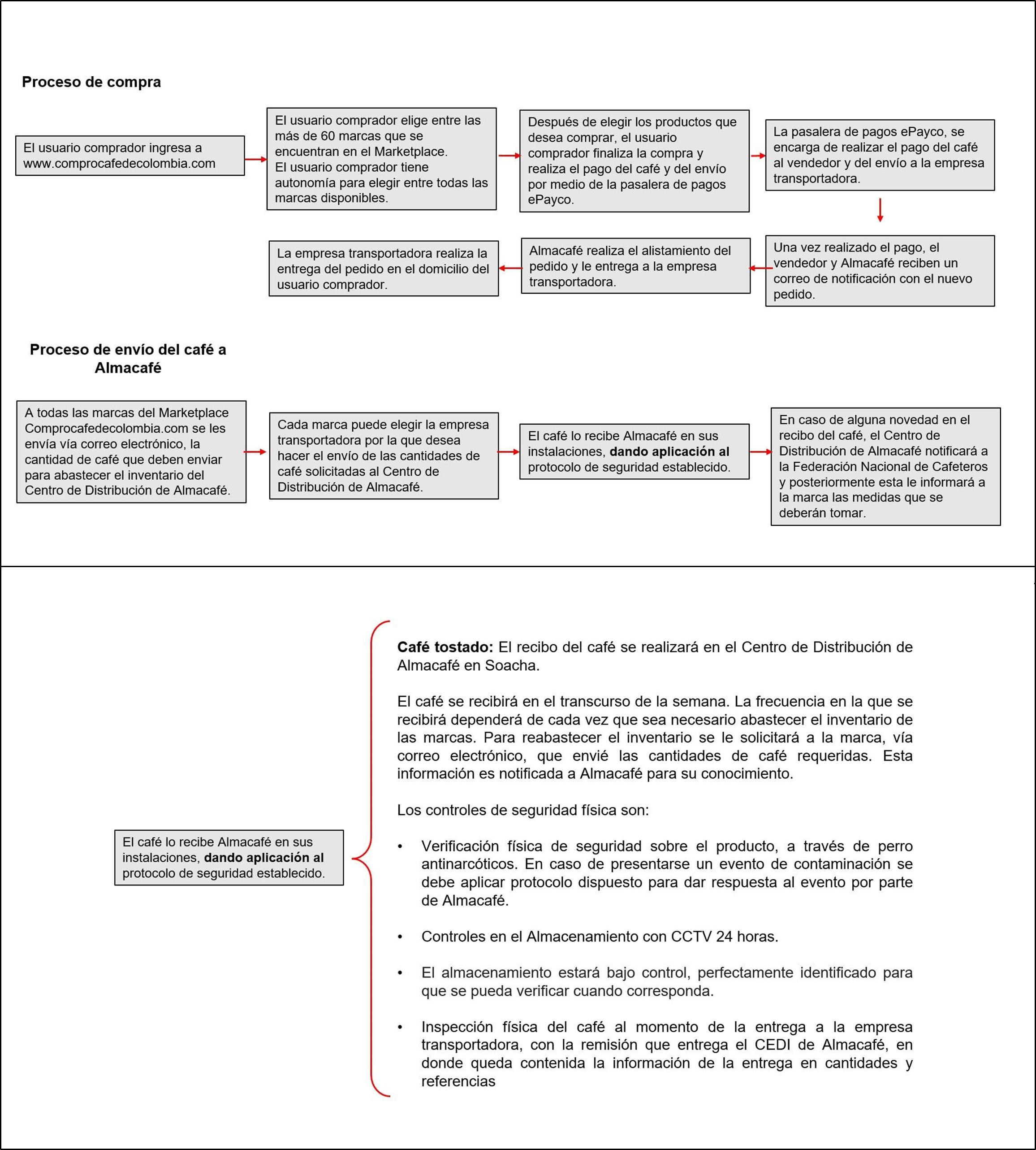 - Logística optimizada: Almacafé gestiona el almacenamiento del café y alistamiento de los pedidos mientras que una transportadora aliada se encarga de la recolección y la entrega de los paquetes de todas las ventas.