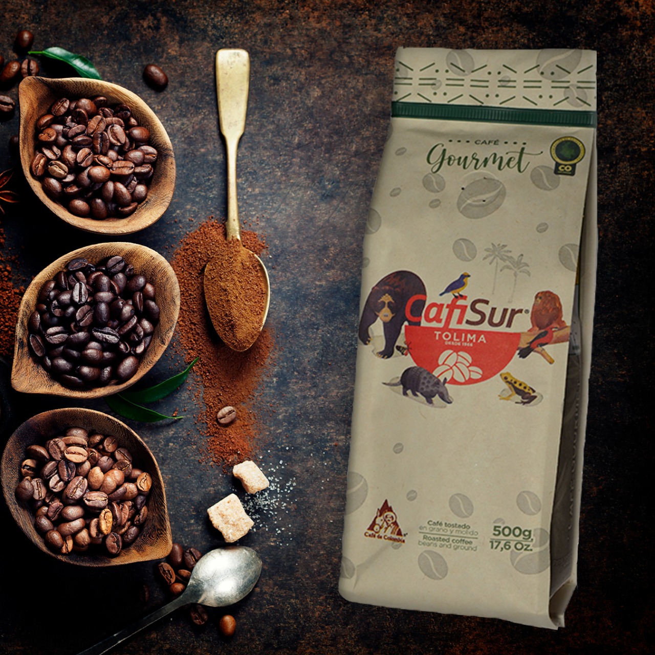 CafiSur Tolima es una marca que representa el esfuerzo de los caficultores del sur del Tolima durante más de 55 años. Cultivan un café de alta calidad en tierras privilegiadas, con perfiles de sabor únicos.