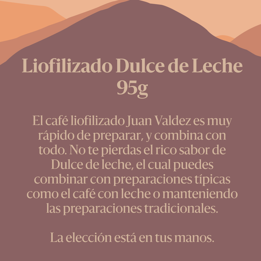 Con Juan Valdez Café – Liofilizado Dulce de Leche, la calidad premium de los granos de café se une a la comodidad de un café instantáneo, ofreciendo una experiencia gourmet lista para disfrutar en casa, en el trabajo o donde estés. Atrévete a transformar tus rutinas de café en momentos especiales y descubre cómo esta combinación puede convertirse en tu favorita.