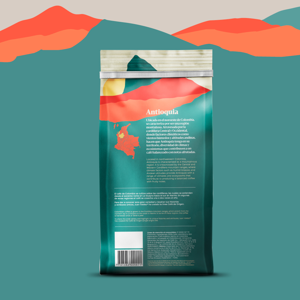 Este café de orígen Antioquia es el resultado de un cuidadoso proceso de selección de granos, cosechados a mano para asegurar su óptima madurez. Su tueste medio resalta los matices naturales del grano, equilibrando cuerpo y acidez de forma perfecta. Ideal para métodos de preparación como prensa francesa, cafetera de goteo o espresso, su versatilidad lo convierte en una elección perfecta para cualquier momento del día. Además, el sello de Juan Valdez Café es sinónimo de calidad y compromiso con las comunidades cafeteras.