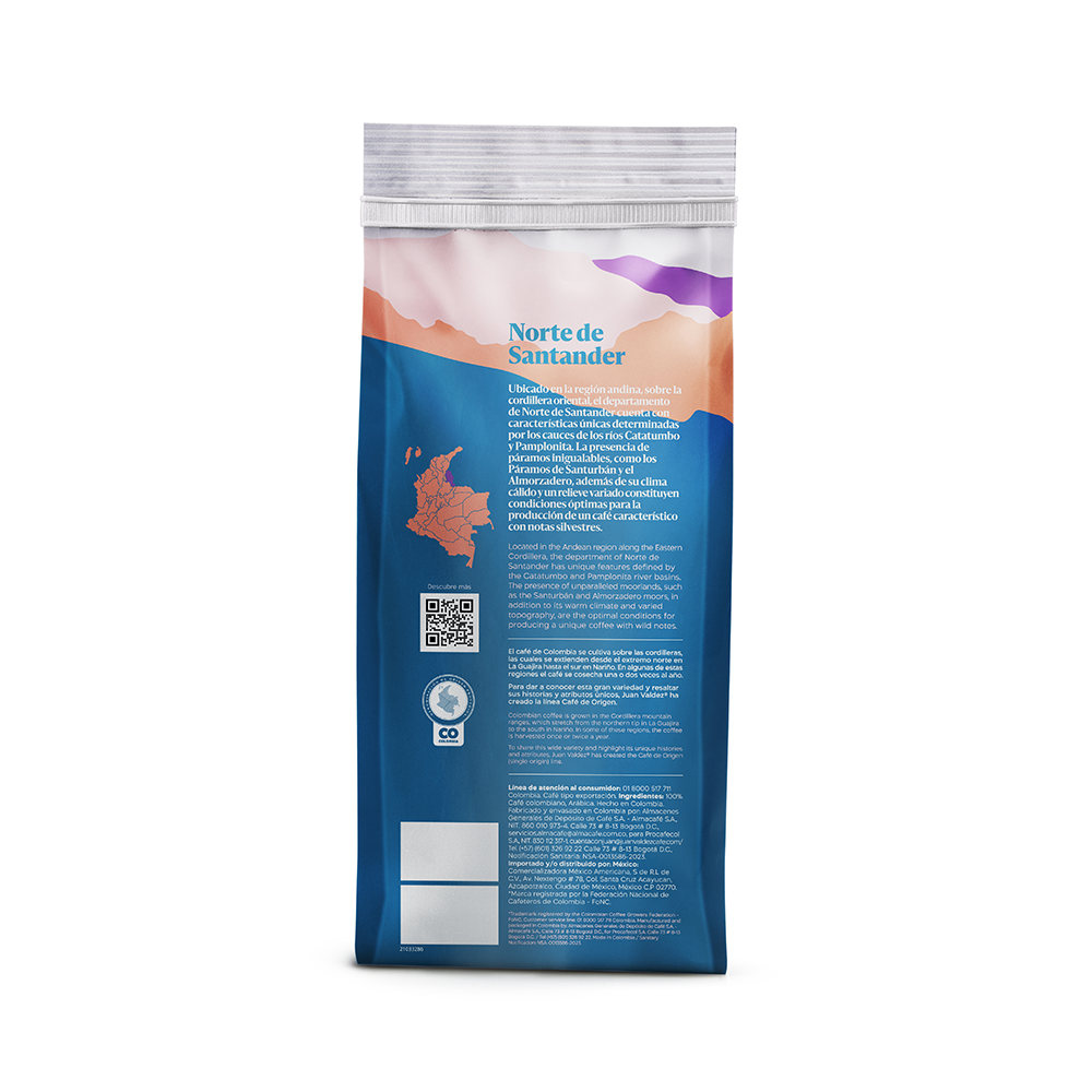 Sobre la cordillera oriental y en la región andina, el departamento de Norte de Santander cuenta con características únicas determinadas por los cauces de los ríos Catatumbo y Pamplonita. La presencia de páramos inigualables, como los Páramos de Santurbán y el Almorzadero, además de su clima cálido y un relieve variado constituyen condiciones óptimas para la producción de un café característico con notas de sabor silvestres a té verde y dulce caña de azúcar y un perfil de taza balanceado, acidez media y cuerpo medio.