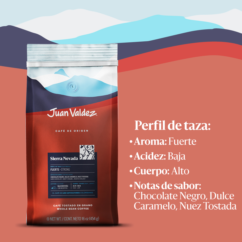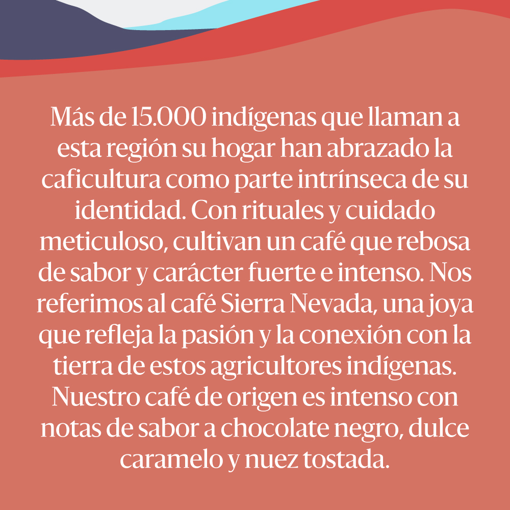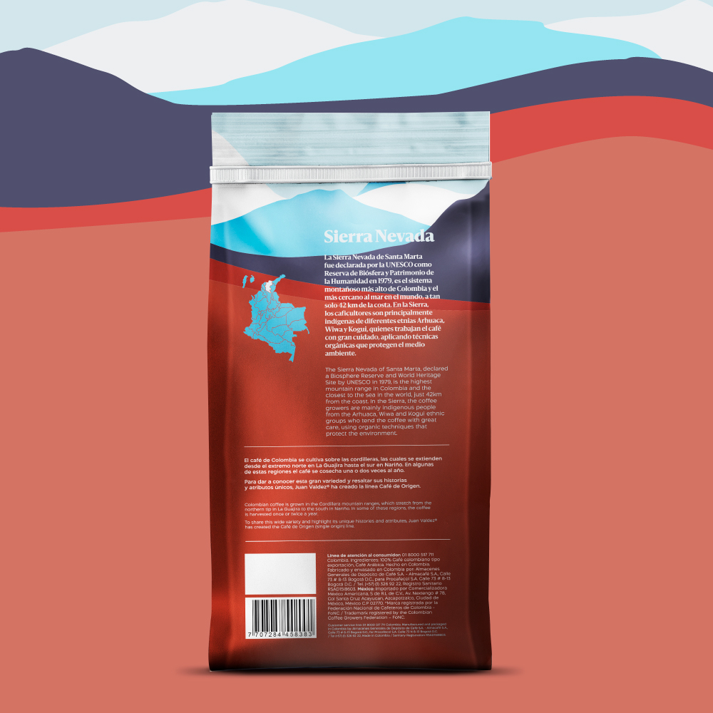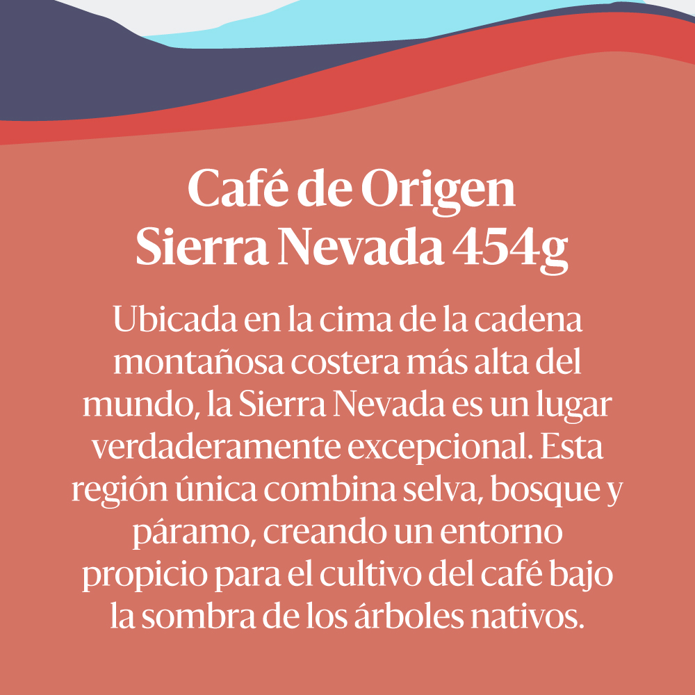El Juan Valdez Café – Origen Sierra Nevada proviene de una de las zonas cafeteras más emblemáticas y biodiversas de Colombia. Situada entre el mar Caribe y las cumbres nevadas, la Sierra Nevada ofrece un microclima excepcional para el cultivo de café, con temperaturas frescas, lluvias equilibradas y suelos volcánicos ricos en nutrientes.