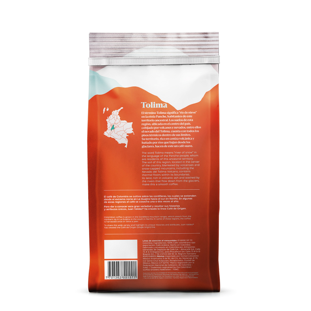 Café de origen suave con notas de sabor a fresa y mora. Entre los bosques de niebla del corazón de Colombia crece este café suave, que lleva la dulzura propia de los campos de la región tolimense.